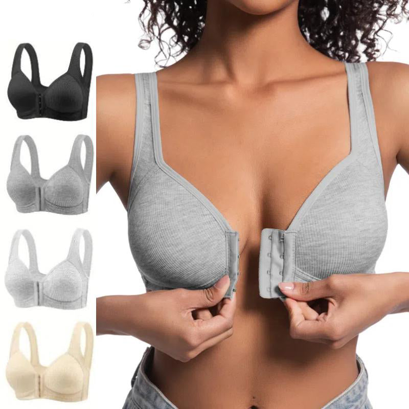 Tired of twisting and painful back clasps? The easy front-closure design lets you wear it on and off in seconds. Wireless support gently lifts and centers your bust without digging or pressure, keeping you comfortable and confident all day long.