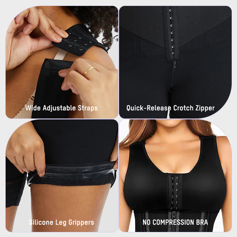 Customize lift and comfort. Distribute weight evenly-no digging, all-day ease. Cross-back ready for versatility.Bathroom breaks in 3 seconds-no undressing, pure convenience. Zipper glides smoothly, re-secures instantly.Invisible bands prevent ride-up. Stays put during motion-smoothlines guaranteed.