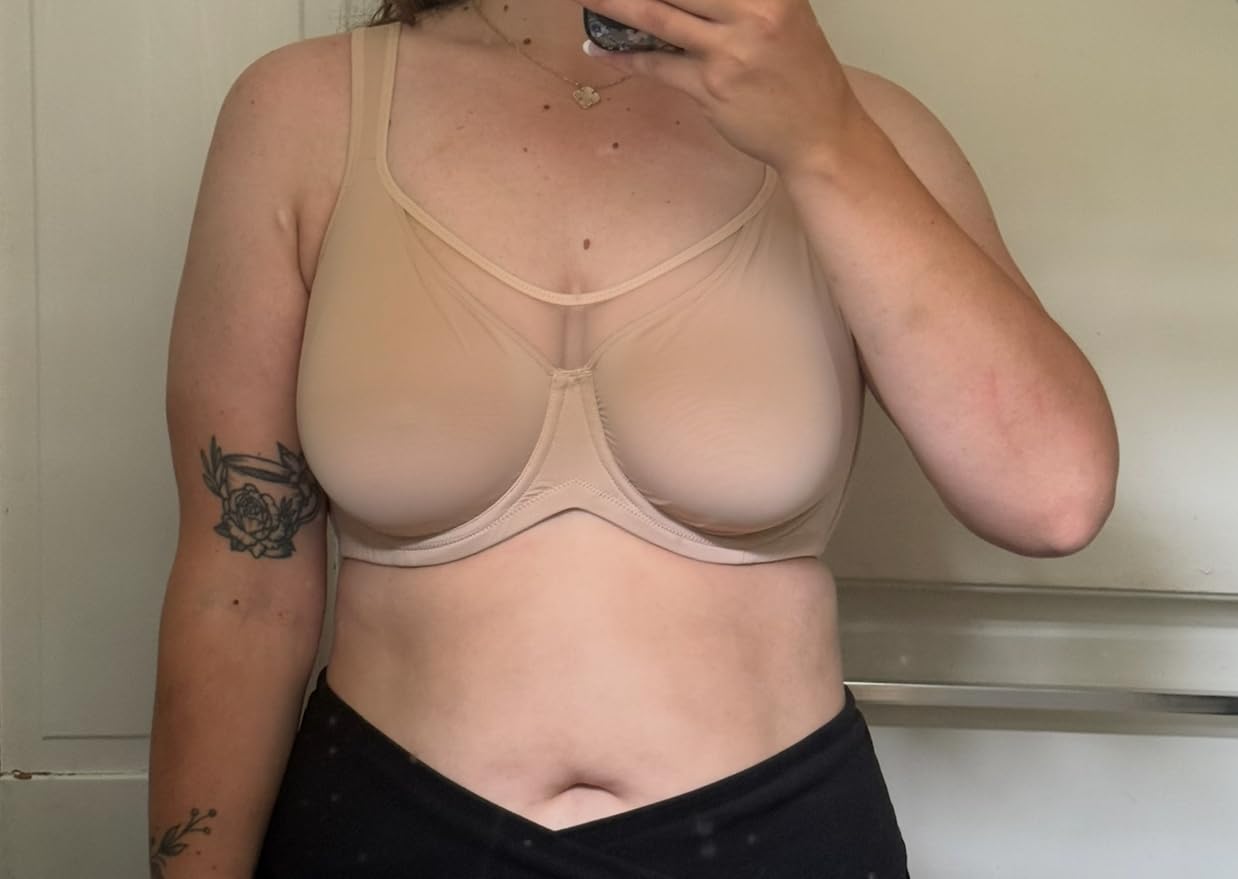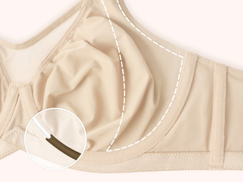 Think of how a push-up bra enhances curves by bringing the breasts front and center; our minimizer bras do the opposite. They gentlyspread the breast tissue for a wider, more natural shape—like softly pressing a softball to make it rounder and broader.