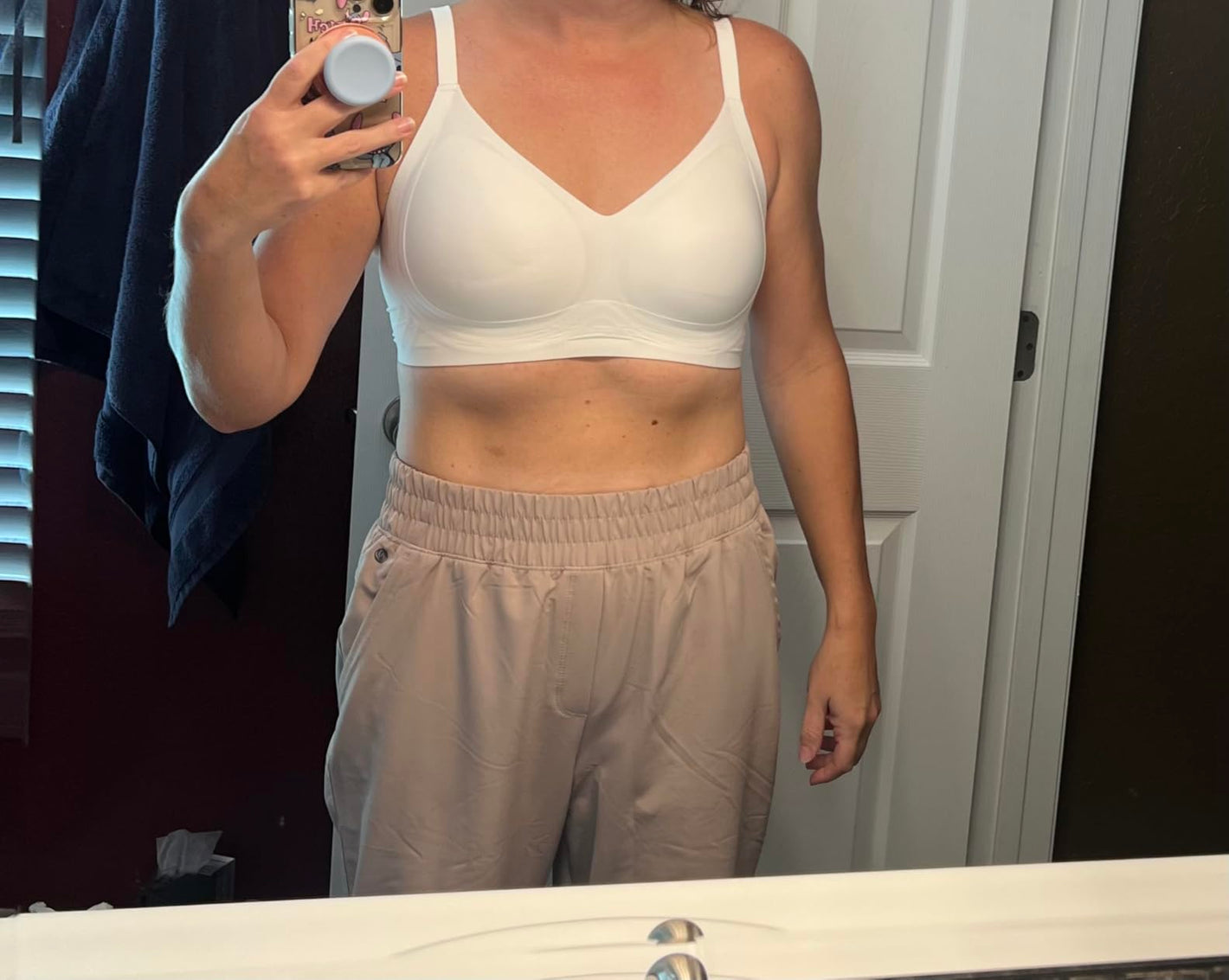 I love that the straps don’t dig into my shoulders, and the band feels really soft but still supportive. I can raise my arms and nothing moves—this is a big deal for me. Great lift, great comfort, and super flattering under T-shirts.