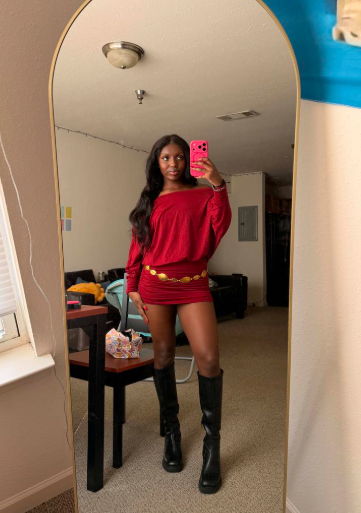 I wore this to a New Year’s party and got so many compliments! The off-the-shoulder style is super flattering and the ruching really hugs my waist. Totally comfy too—didn’t feel restricted at all