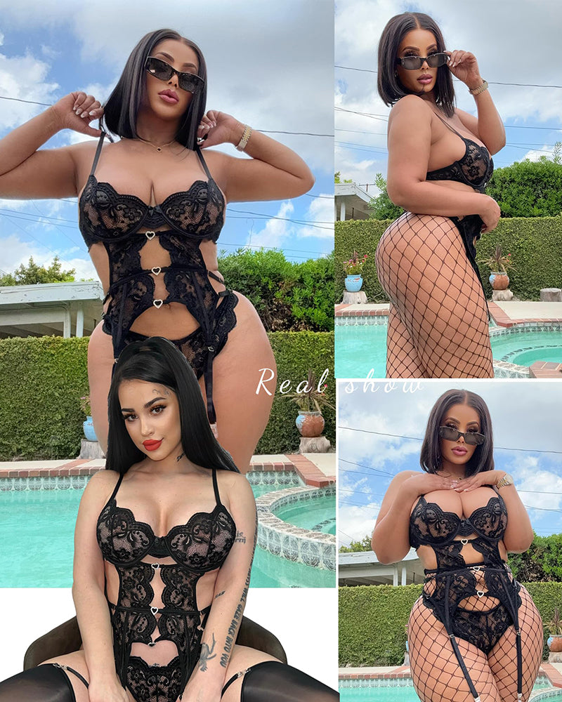 Lingerie bodysuit set feature deep v neck, and underwired bras , floral lace cut out rhinestone detail ,It will better push-up support, shaping your boobs perfectly and show your stunning curves.