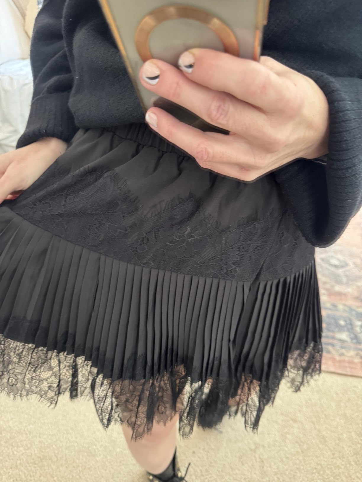 This skirt is super cute and fits just right, the flowy fabric and pleated design make it perfect for going out. I love the lace trim detail; it adds a fun, flirty touch without being too much. The built-in shorts are a lifesaver and make it really comfortable to wear. I’ve gotten tons of compliments every time I wear it!