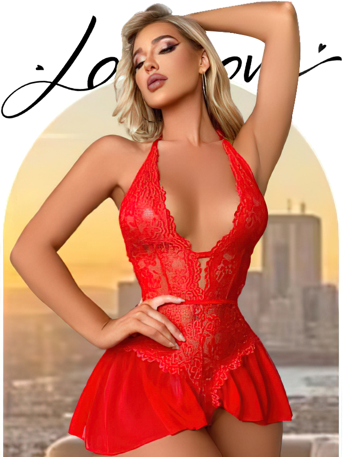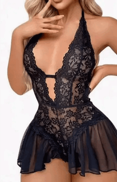 Lace Halter Teddy with Sheer Skirt